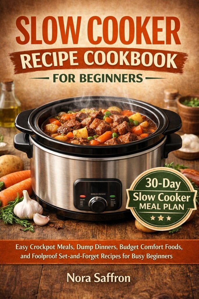 Use a pork shoulder (bone-in adds flavor). Rub generously with brown sugar, smoked paprika, garlic powder, onion powder, salt, and black pepper. Place in the slow cooker with a cup of apple cider vinegar and cook on low for 8–10 hours.